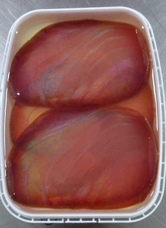 | Textura | Filetes finos y carnosos, de delicado sabor salino. |